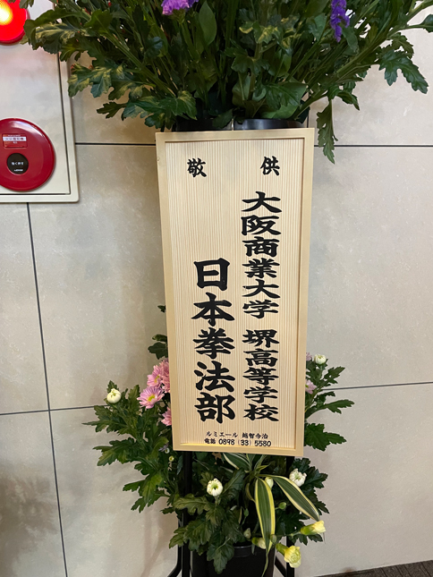二歳から拳法をはじめ、昨年日本拳法の発祥地大阪の強豪校 大阪商業大学堺高等学校に進学した田村虎太郎の先生から 御供花を贈って頂きました。ありがとうございます。