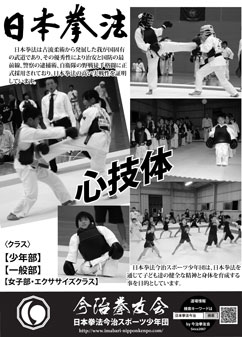 | |愛媛県連盟 (Ehime)|日本拳法 (Kempo)|形 (Kata)|組織 (Org)|道場案内 (Dojo)|活動紹介 (Intro)| |活動報告 (Report)|活動記録 (Record)|募集案内 (Recruit) |関連グッズ (Goods)|(Gallery)| |