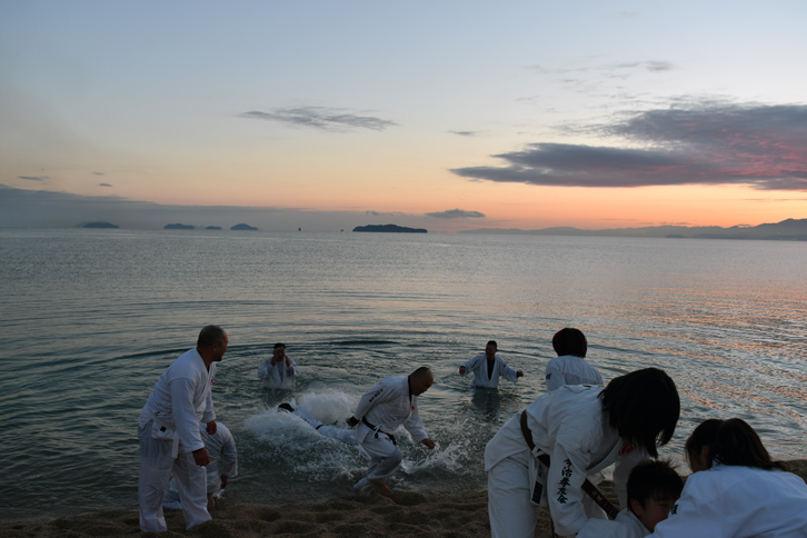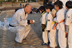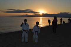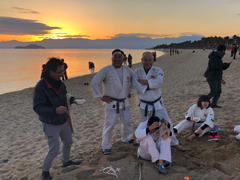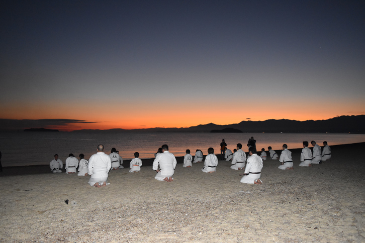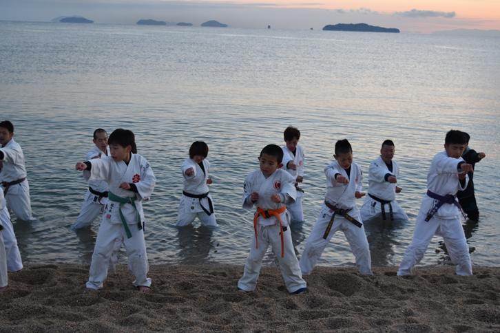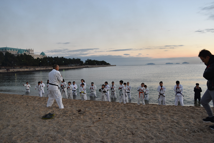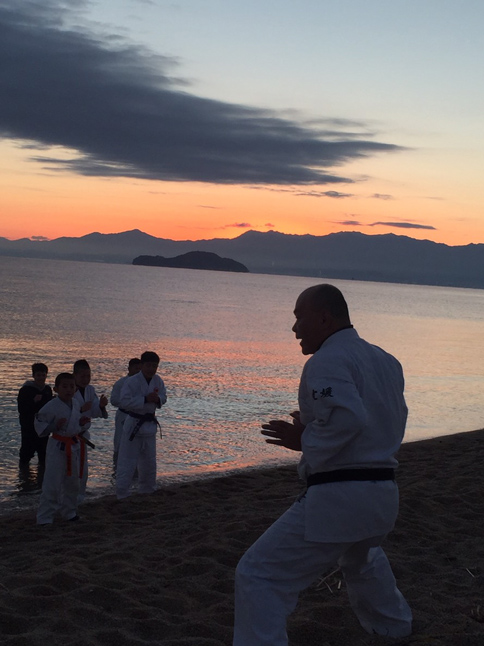 | 1月1日(日曜日)元旦。 1月1日(火曜日)元旦。 最低気温は1度、風速は西南西の風1メートル。晴れて穏やかな天気で新年がスタート。 2000年初年度少数で始めた寒稽古も恒例となっていましたが、2018年寒稽古は、諸事情により中止とさせて頂きました。 「寒稽古をやりたい」という求める声があがり、参加、協力の申し出、メンバー、保護者の皆様の熱いリクエストに応え、寒稽古を再開することとしました。 2000年初年度少数で始めた寒稽古、今治拳友会を立ち上げた頃の「初心を忘れず!」 寒さに負けない気力と体力の充実を目指し、心身の鍛練を目的とする。 「自分の弱さに打ち勝つ!」 今治拳友会の寒稽古は、一昨年に引き続き八回目です。 三重県、岡山県、香川県等県内外から、「寒稽古」に参加してくれました。 夜も明けてない6時前に、防寒着を脱いで準備運動。 団旗を掲げて、織田ヶ浜の海岸線をランニング開始「今治拳友会、ファイト〜!」 素足になって、整列、正座、黙想。元旦の砂浜、足の感触は「冷たい」を通り越して「痛い」入水寒稽古。寒稽古の締めは、気合いの十本突き。 泣く子続出、泣きながらも、全員完走!みんな、よく最後まで頑張りました。 寒稽古終了後は、寒中水泳大会?が始まる。(笑) 県外からお越しの皆様を、おもてなしの心で瀬戸内の海にご案内。(笑) 2019年元旦、平成最後の初日の出。寒稽古に参加した子ども達には、今治拳友会よりお年玉の図書カード。 初めて参加した子ども達に今日の感想はと聞くと、 「館長が怖かった。」へ??、でも「楽しかった。」だそうです。(笑) 寒稽古の「ジンクス」、「初夢、正夢!」 子ども達の間で、広まっているジンクスは、「寒稽古に行かないと優勝できない。」 今年は、賞状やトロフィーも貰えるように頑張る。優勝できるように頑張る。来年の再会を誓う。 県境や道場の垣根を越え、皆の団結心を示せて、団結心を強める事ができて、参加してくれたメンバーや、子ども達の心に残る、今後に繋がる充実した寒稽古になったと思います。 今治拳友会冬の祭典第8回寒稽古 お蔭様で、寒稽古無事終了しました。 参加された皆様お疲れ様でした。 寒稽古を支えて下さった保護者の皆様、後方支援部隊の皆様有難うございました。 |