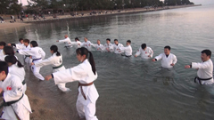 | 2023年(令和5年)1月1日(日曜日)元旦。東村海岸公園(通称、織田が浜) 最低気温は4度、風が吹いていない、団旗が風になびかないのは寒稽古を始めて初めての好天気 、雲は少しあるものの晴れて穏やかな天気で新年がスタート。 コロナ禍による行動制限がない中で新年を迎えたのは3年ぶりです。 2011年少数で始めた寒稽古、今治拳友会を立ち上げた頃の「初心を忘れず!」2018年は諸般の事情により中止、2019年に再開。2021年以降、新型コロナの感染拡大で二年連続中止。 2023年、3年ぶりに寒稽古を開催できる運びになりました。 一般部有志4時集合、穴掘り、薪運び、火起こし、炊き出し準備、会場設営。少年部5時半集合。 夜も明けてない6時に、防寒着を脱いで準備運動。 団旗を掲げて、織田ヶ浜の海岸線をランニング開始。 「今治拳友会、ファイト~!」 素足になって、整列、正座、黙想。 元旦の砂浜、足の感触は「冷たい」を通り越して「痛い」 香川県、岡山県、大阪府、三重県等、県内外から、「寒稽古」に参加してくれました 南海放送と愛媛朝日テレビに取材していただきました。 初日の出のビューポイントとしても知られる織田が浜、 たくさんのギャラリーに囲まれて、入水寒稽古。 寒稽古の締めは、気合いの十本突き。 寒稽古に参加した子ども達には、今治拳友会よりお年玉のQUOカード。 全員完走、みんな、よく最後まで頑張りました。 県境や道場の垣根を越え、皆の団結心を示せて、団結心を強める事ができて、参加してくれたメンバーや、子ども達の心に残る、今後に繋がる充実した寒稽古になったと思います。 新型コロナの感染拡大で、急遽来れなくなったりと、開催の可否、不安の入り交じる中、おかげさまで、無事終了することができました。 参加された皆様お疲れ様でした。 寒稽古を支えて下さった保護者の皆様、後方支援部隊の皆様有難うございました。 寒稽古の「ジンクス」、「初夢、正夢!」 2023年どんなドラマが? 2023年が最高でイケてる年でありますように! 本年もどうぞよろしくお願いいたします。 |