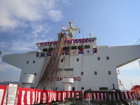進水式に代わるものとして実施される命名式は、現在の大型商船でよく用いられる様式です。