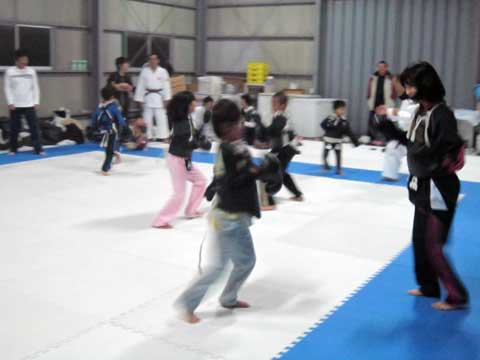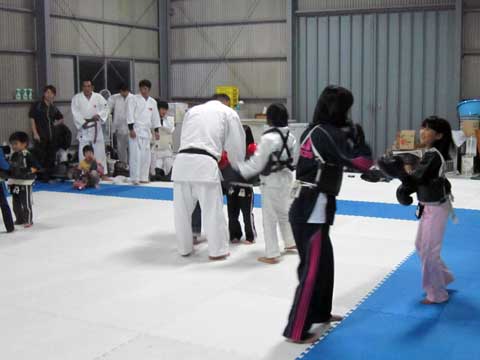 一般の部の見学者、初日より体験防具練習。