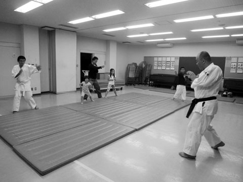 先週に引き続き、小学校三年生の女の子と幼稚園組年長の男の子が元気に体験稽古に参戦。