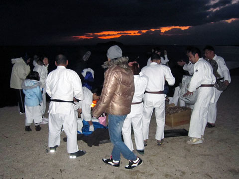 毎年、1月1日に、冷たい真冬の海に入り寒稽古を行っているそうです。