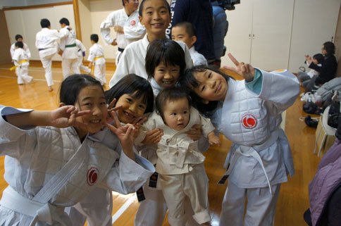 風邪で、拳法も学校もお休みしていた小学校に二年生のモモですが、稽古は見学で参戦できませんでしたが、最後の集合写真はみんなと一緒に参加することができました。