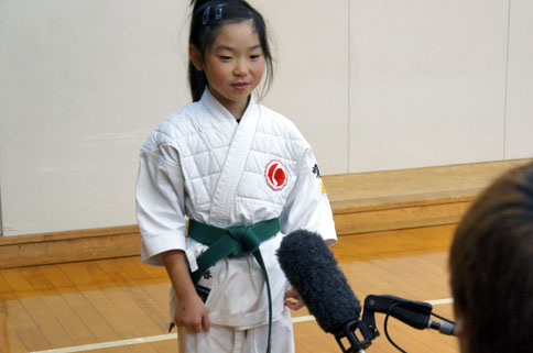 締めは、みんなで声を合わせて、元気な「えい!」で直突き。