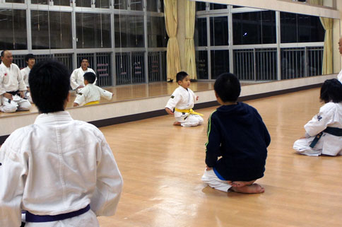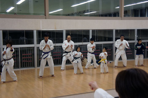 小学校のクリスマス会で、日本拳法の形の演武を披露した小学校二年生のモモ。
