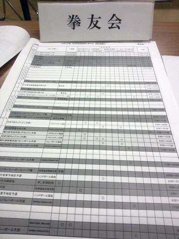 各種目協会の平成24年度の利用実績から、平成25年度の予約上限日数を決め、利用希望日を取り纏め、望んだ体育施設利用予約調整会でした。