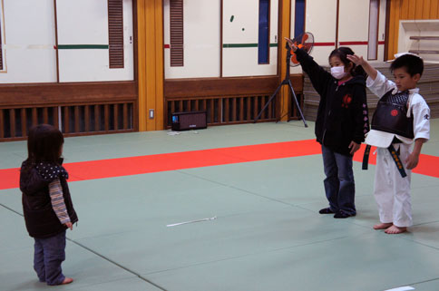 少年部稽古の締めは、小学校四年生のあいこの号令で気合いの十本突き。