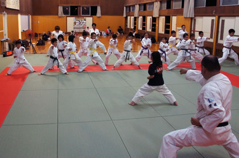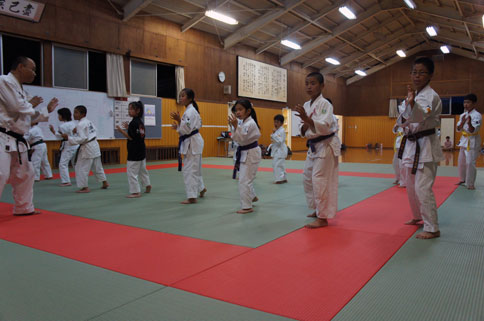 少年部稽古の締めは、小学校四年生のりんかの号令で気合いの十本突き!