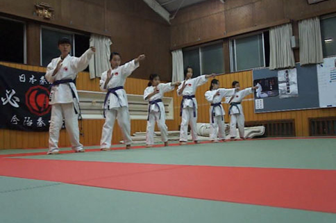 強化練習の締めは、小学校六年生の少年部主将のあーちゃんことあかねの号令で気合いの十本突き。