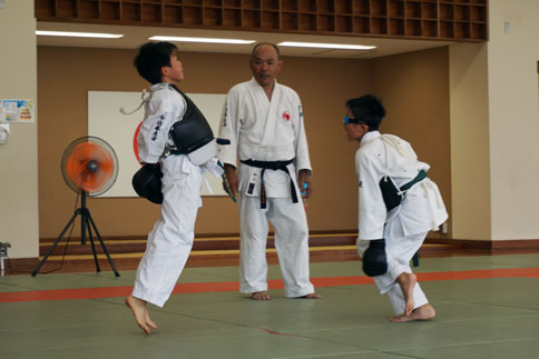 武道場はというと、身体に優しい空調無し、夏の夜になると網戸が無いので、虫が一杯飛び込んできて、虫と戯れることができる環境にも優しい、夏日には熱中症にも優しい武道場となっております。