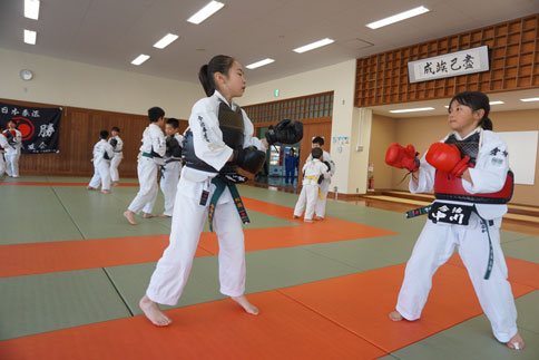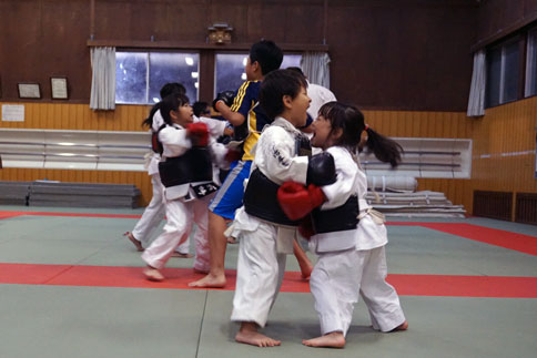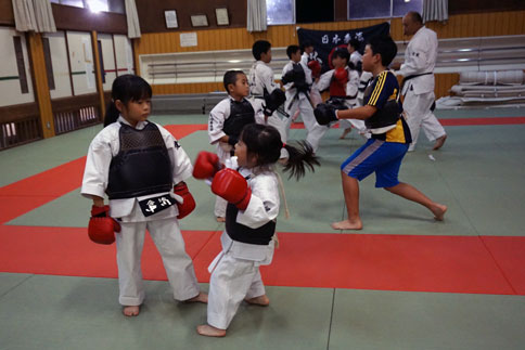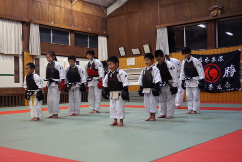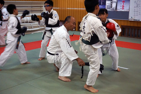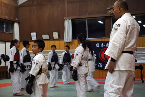 卒団の儀式、三月をもって卒団する少年部の子ども達との総当たり戦。