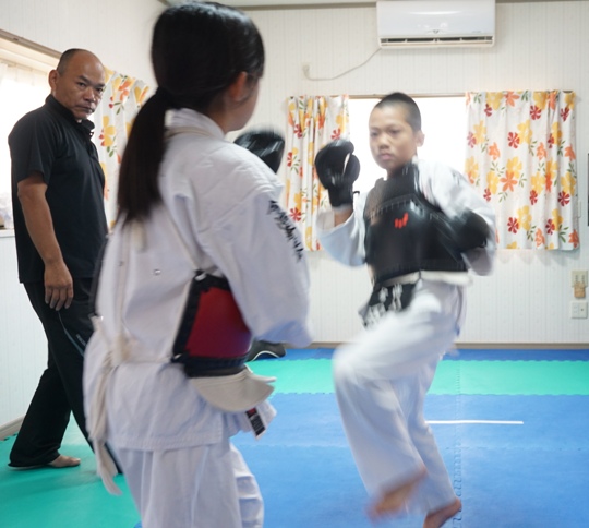 子ども達には、攻めも、受けも必ず踏み込む、肩、腰を回す、手打ちになるな、攻めろ、待つな、積極的な拳法、観ていて面白くない試合をするなと指導しています。