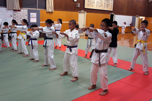 稽古の締めは、小学校四年生ののりこの号令で、気合いの十本突き。