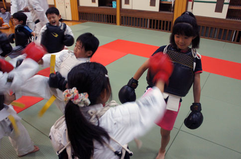 少年部稽古の締めは、小学校四年生のあいこの号令で、気合いの十本突き。