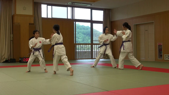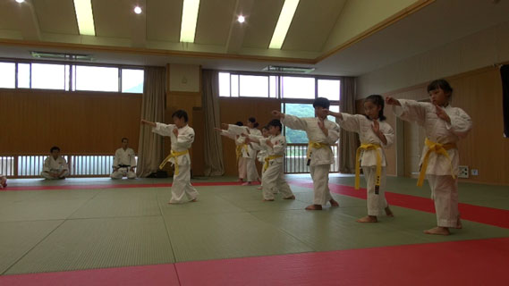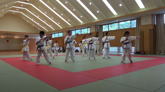 強化練習の締めは、小学校六年生の少年部主将のあーちゃんことあかねの号令で気合いの十本突き。