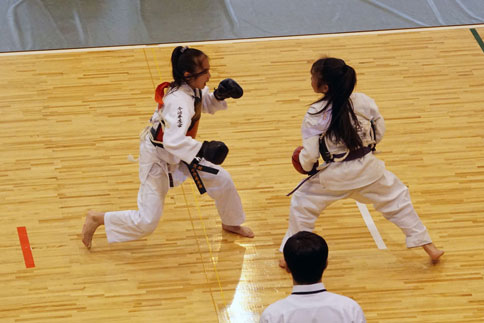 【小学5年生女子】 赤) 井手 虹花 (今治拳友会) vs 白) 米谷 ひばり (吹田市日本拳法連盟)