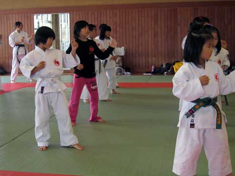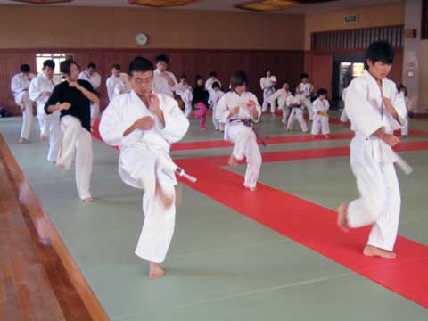 昇級審査前のひととき。みなさんは、形の自主練習中。