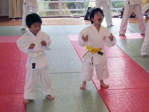幼年組の正宗とコタロー指導員、元気な気合いで「えい!」