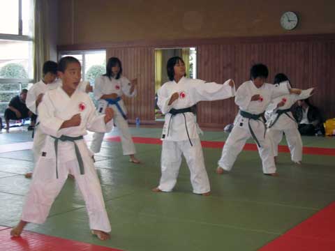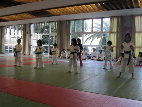 元気な「えい!」の気合いに引き寄せられて、格技室の外にぞくぞくと人が集まってきました。(笑)
