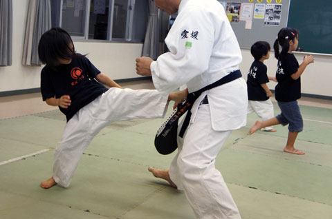 試合形式の勝負練習。幼稚園組のお友達とコタロー指導員の対決。