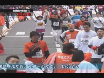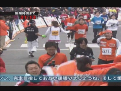 ばり男隊長が、高橋尚子選手と手を繋いで感動のゴール。