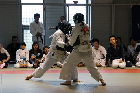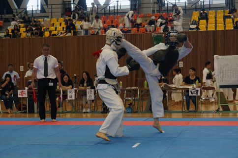 1本先取時間切れの時は優勢勝ち、警告2回は1本、警告0.5は勝敗関係無し、同点の時は延長1分間1本勝負、なお、決さざるときは判定(決勝のみ無制限)その他は日本拳法全国連盟審判規定に準じて行います