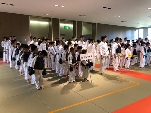 ①、男子:1部(有段者):1チーム5名・2部(2段以下)チーム3名:女子の部・1チーム3名の対試合とする。