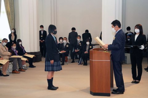 3 内容 知事から表彰状と副賞(団体には楯、個人にはメダル)を贈呈する。