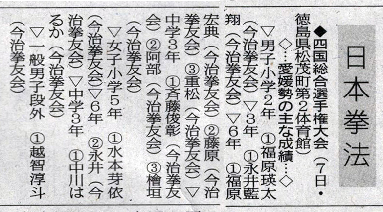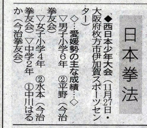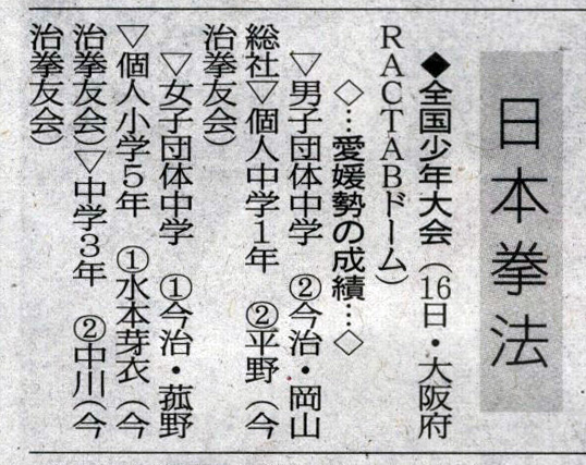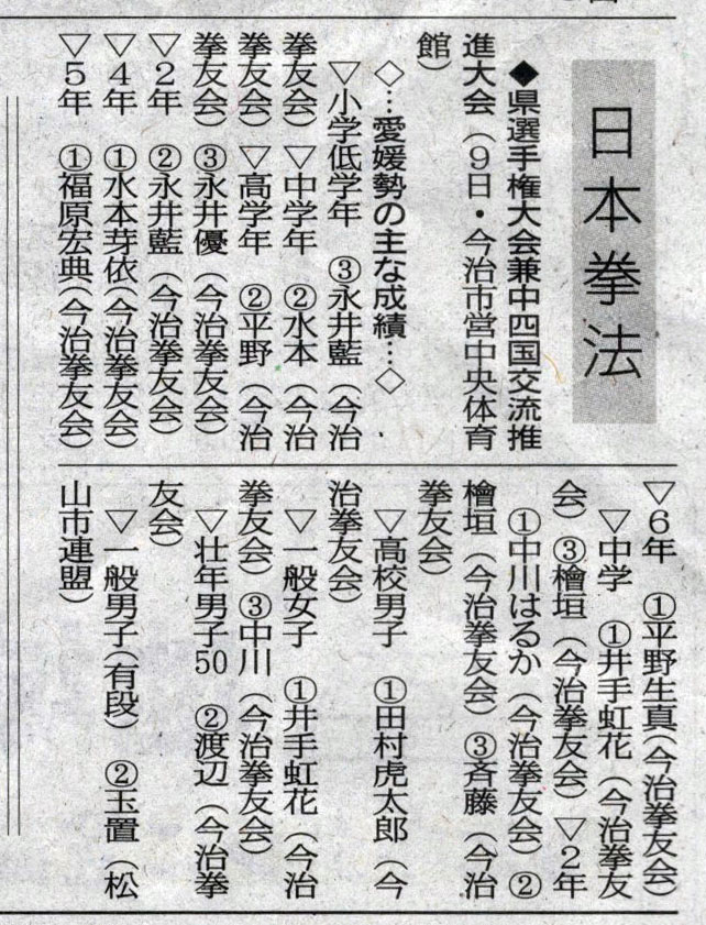 愛媛新聞「Sportえひめ」日本拳法岡山県総合選手権大会