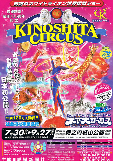 松山市で5年ぶりとなる「木下大サーカス」の公演(愛媛新聞社主催)が、7月30日より、同市堀之内の城山公園で始まりました。