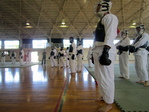 今回の昇段級審査は、日本拳法連盟傘下の元で、四国が一つになって日本拳法四国連盟(仮称)を見据えての昇段級審査です。