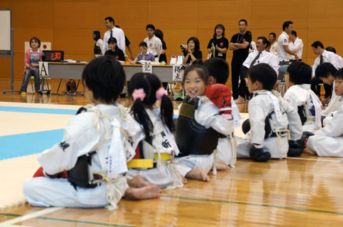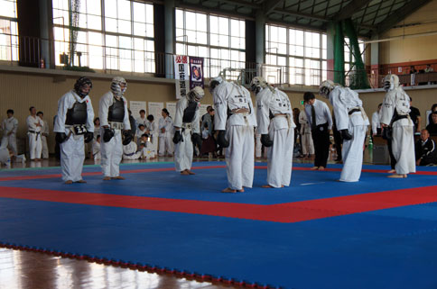 大会では5人1チームの団体と個人のトーナメントがあり、3本勝負で競った。会場からは「声を出して」「止まるな」と声援が送られていた。