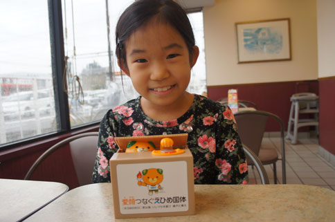 みかん箱の上にある皿に硬貨を乗せるとフタが開き、みきゃんが顔をのぞかせます。