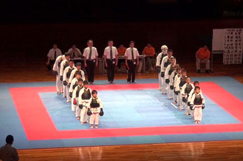 講習会に参加する少年部は、審判講習会の中で、試合形式の勝負練習を行います。