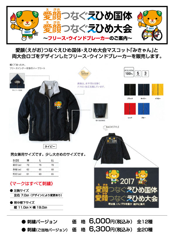 この度、「愛顔(えがお)つなぐえひめ国体・えひめ大会」オフィシャルサポーターである「(株)フクヤスポーツ」がえひめ国体・えひめ大会のウインドブレーカー販売を開始しましたので、お知らせします。