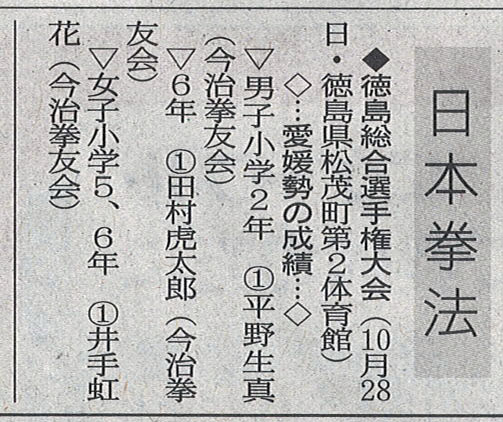 愛媛新聞「Sportえひめ」日本拳法徳島総合選手権大会