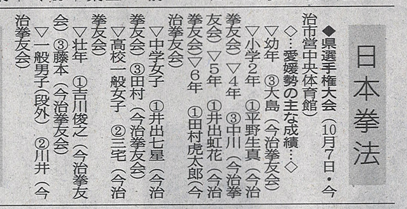 愛媛新聞「Sportえひめ」日本拳法愛媛県選手権大会