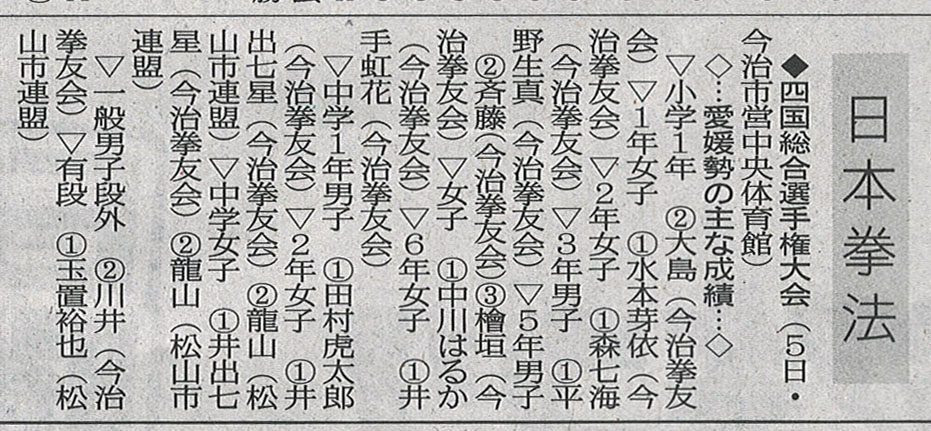■受験資格: 愛媛県連盟加盟団体、今治拳友会、今治拳友会岩国支部、今治拳友会伊丹支部、松山市連盟の所属会員。