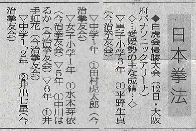 愛媛県連盟加盟団体、今治拳友会、今治拳友会岩国支部、今治拳友会伊丹支部、松山市連盟の所属会員。