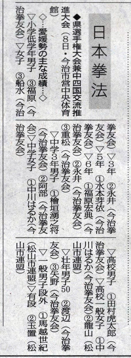 当連盟主管により、10月8日に開催いたしました第17回日本拳法愛媛県選手権大会は、おかげさまで、無事に大会を終了することが出来ました。関係各位の皆様の温かいご支援とご協力の賜と深く感謝申し上げます。