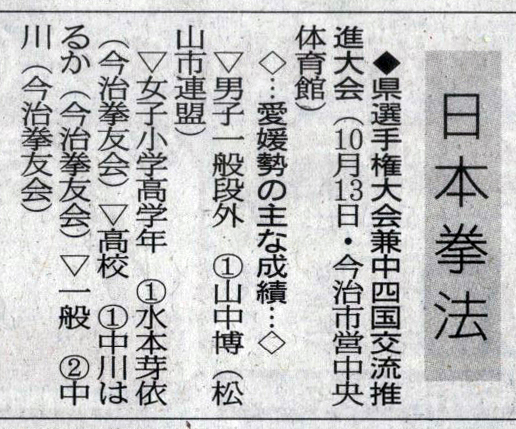 愛媛新聞「Sportえひめ」日本拳法愛媛県選手権大会兼中四国交流推進大会