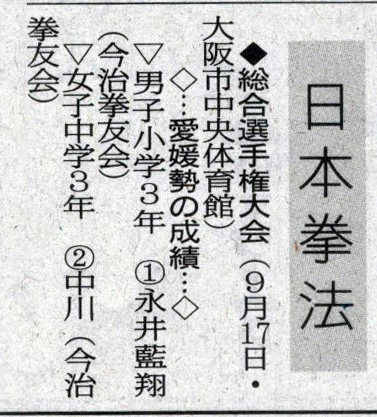 愛媛新聞「Sportえひめ」日本拳法徳島総合選手権大会