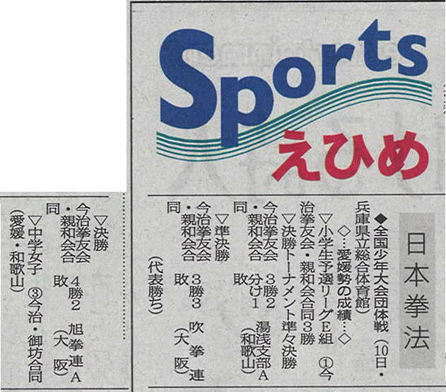 愛媛新聞「Sportえひめ」日本拳法西日本少年大会