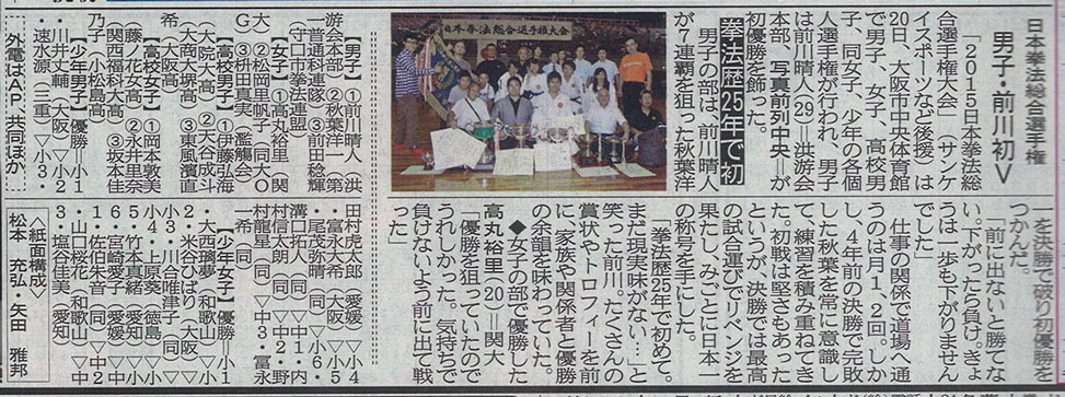 愛媛新聞「Sportえひめ」日本拳法全国少年大会団体戦