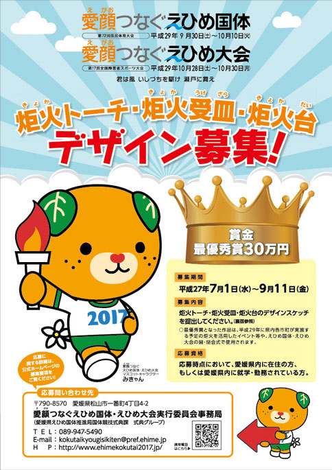 愛顔(えがお)つなぐえひめ国体 炬火トーチ・炬火受皿・炬火台デザイン募集!