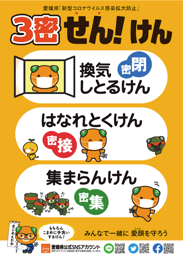 愛媛県「新型コロナウイルス感染拡大防止」3密せん!けん