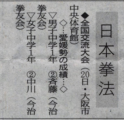 愛媛新聞「Sportえひめ」日本拳法全国交流大会