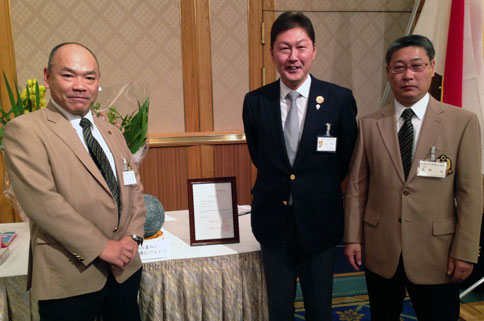 いつも御世話になっている愛媛県日本拳法連盟顧問の徳永県議会議員と、国体開催決定書の前で。